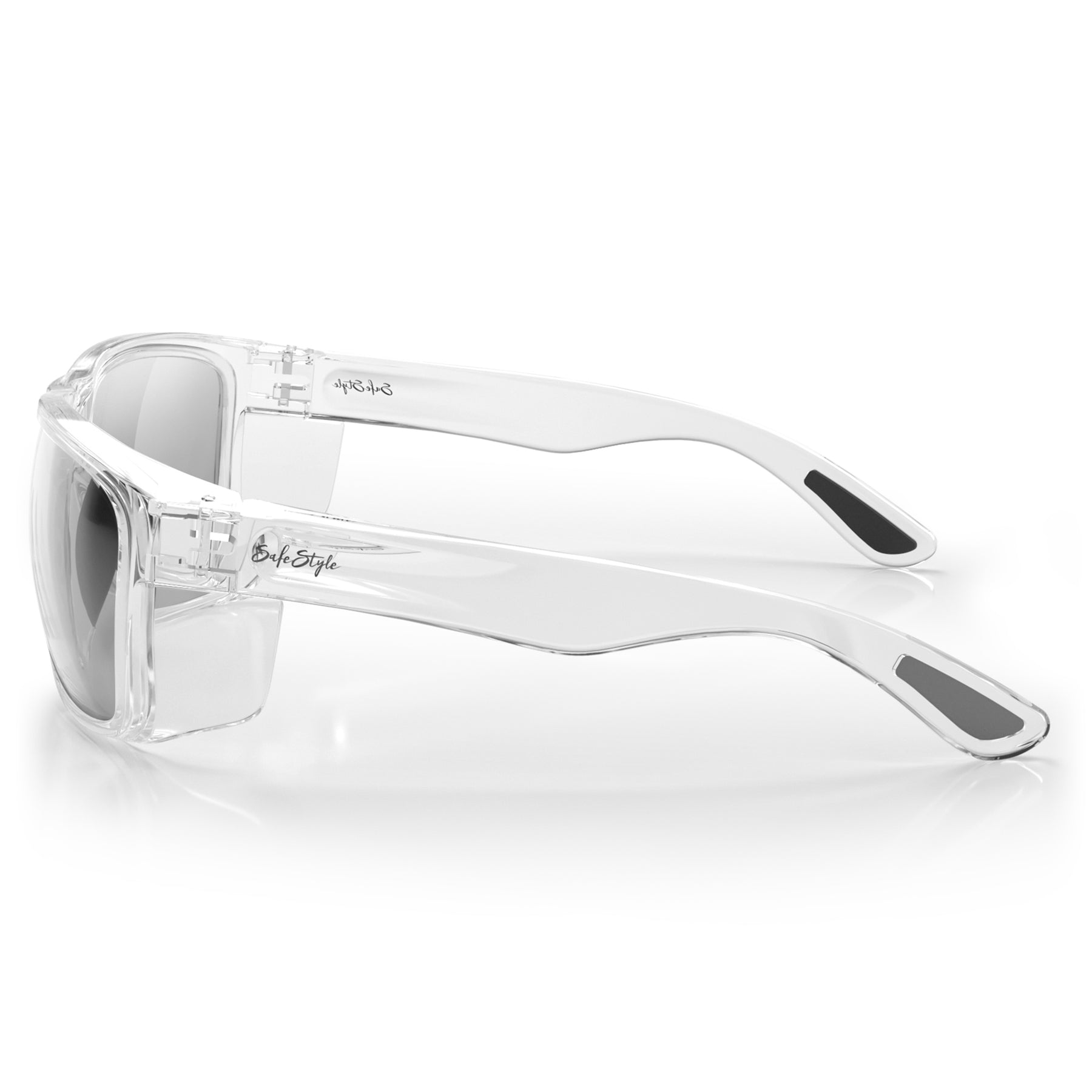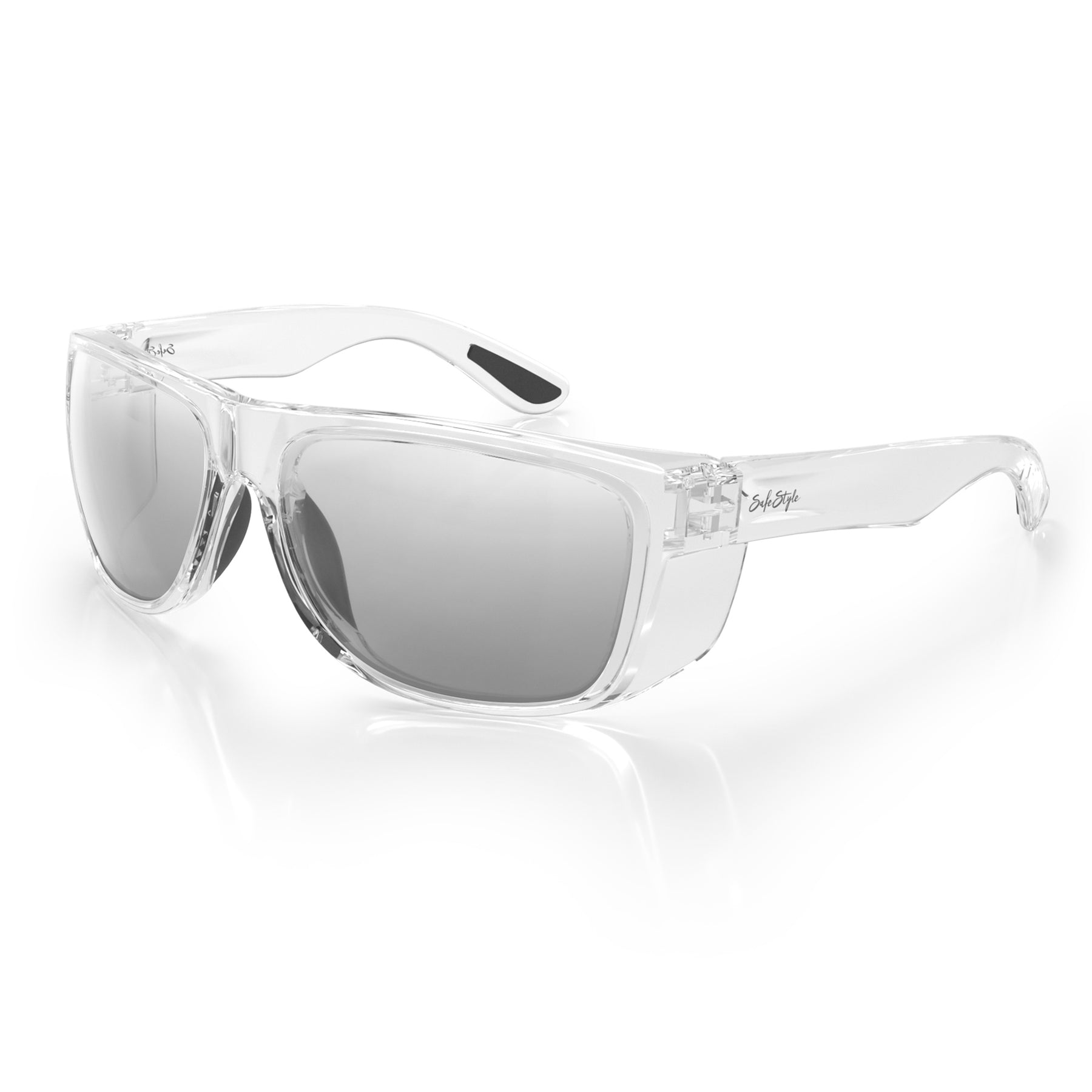 All SafeStyle lenses are made from 100% recyclable UV400 shatterproof polycarbonate, blocking 99.9% of UVA/UVB with a super-hard anti-scratch coating.