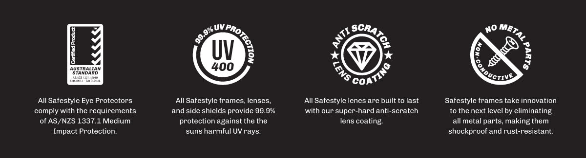 SafeStyle’s clear lenses are perfect for indoor use and offer 100% consistent optical clarity across the entire lens, giving you as close to natural vision as you can get whilst still protecting your eyes from the suns harmful rays. All SafeStyle lenses are made from 100% recyclable UV400 shatterproof polycarbonate, blocking 99.9% of UVA/UVB with a super-hard anti-scratch coating.