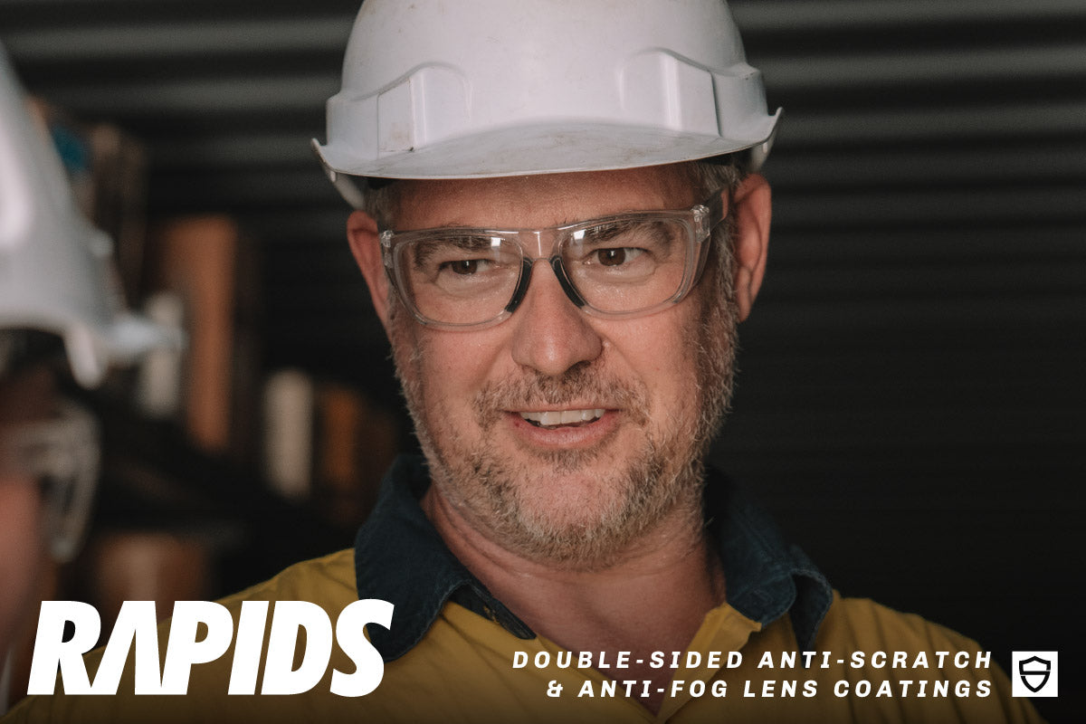 The SafeStyle Rapids are built for those who need maximum coverage and durability. This full-wrap design provides complete protection against dust, debris and UV without blocking peripheral vision.